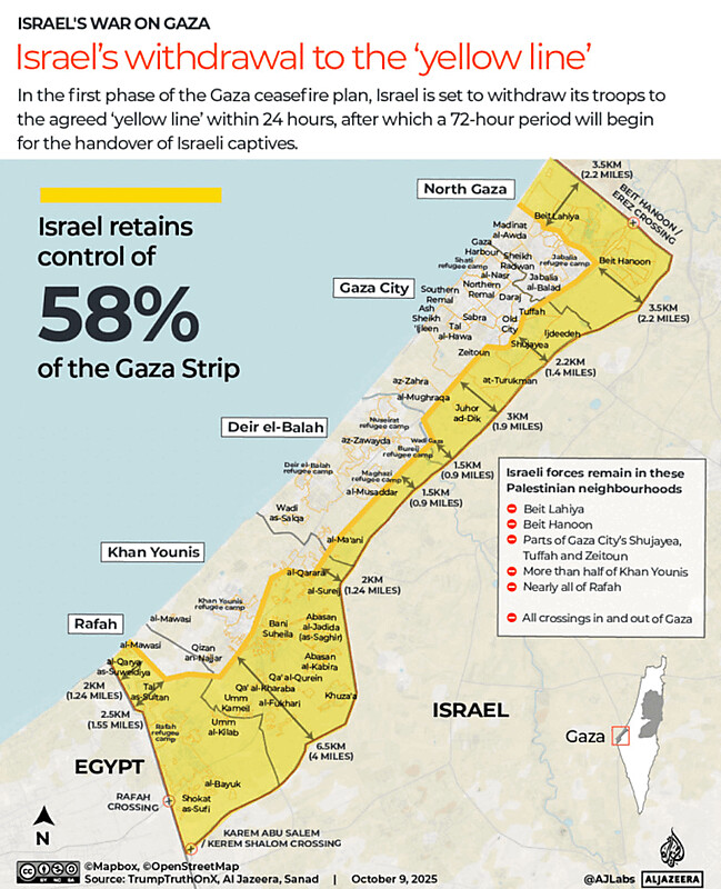Il y a beaucoup de terres agricoles dans la bande de Gaza qui permettaient autrefois aux Palestinien.nes de cultiver leur propre nourriture, comme alternative aux produits israéliens. Mais aujourd'hui, toutes ces terres agricoles se trouvent du côté interdit de la ligne jaune, conformément à l'accord de paix de Trump. Nous ne pouvons donc compter que sur la maigre aide alimentaire qu'Israël nous accorde ou sur les produits israéliens qu'il autorise, qui constituent la totalité de ce que nous pouvons trouver sur les marchés.